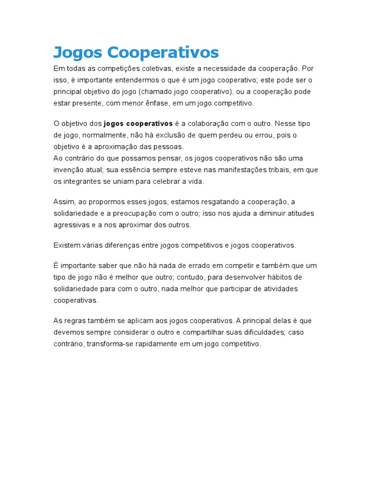 Tipos De Jogos Cooperativos E Competitivos