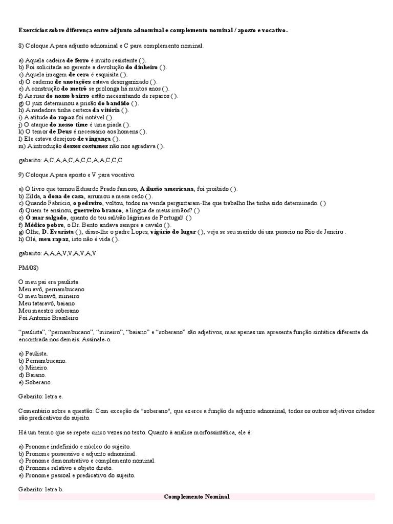 Related post Tirinha com adjunto adnominal com gabarito: