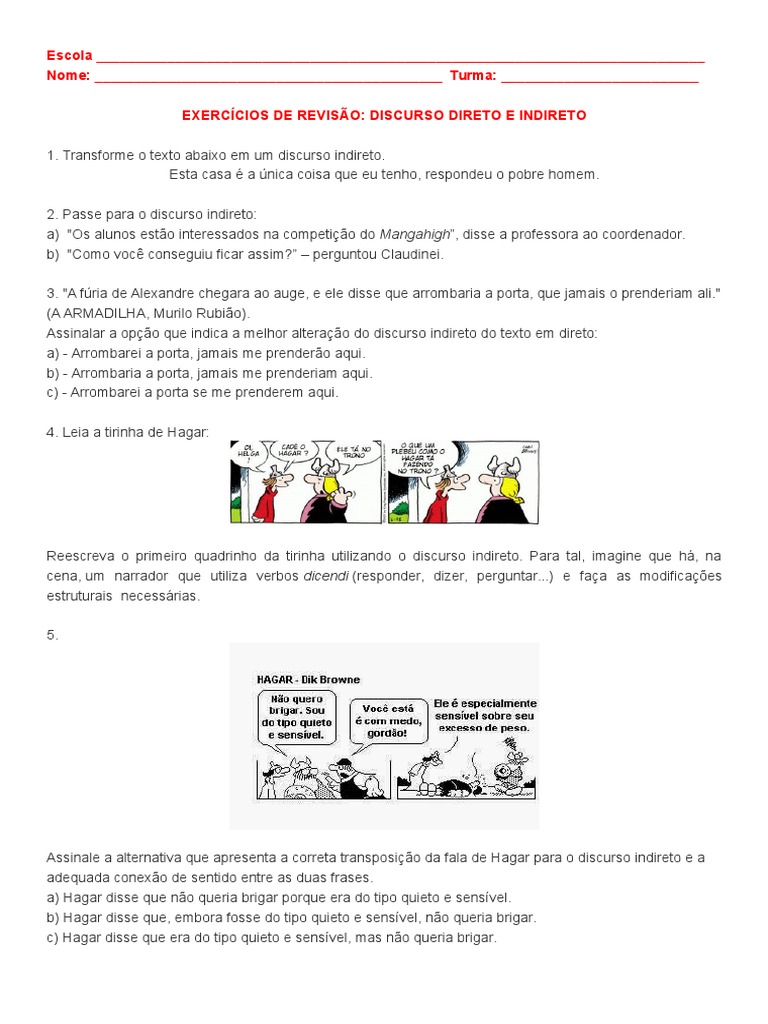 Tirinhas Para Trabalhar Discurso Direto E Indireto Com Gabarito